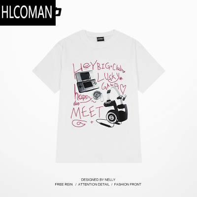 HLCOMANNELY嘻哈西海岸手绘耳机印花情侣短袖T恤男女ins潮半袖tee