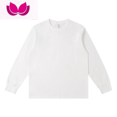 七斓至简t240g白色t恤女 长袖内搭白t打底衫宽松圆领上衣