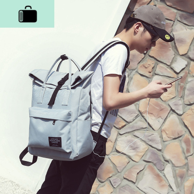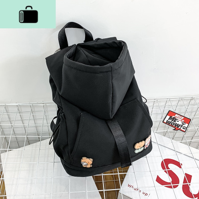 日系连帽子双肩包男韩版高中学生书包女ins原宿风大容量潮牌背包NEW LAKE