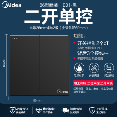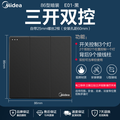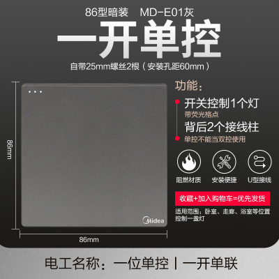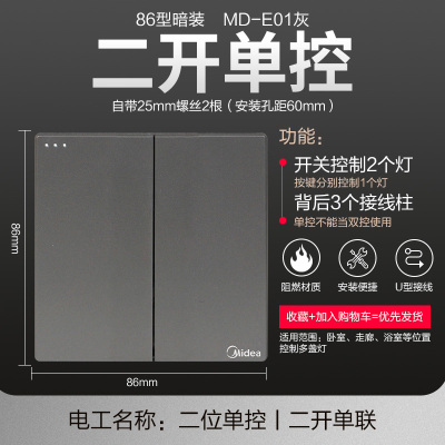 美的(Midea) 开关插座灰色系列二三极 86型床头墙壁开关电工暗装面板E1五孔插座多孔电源