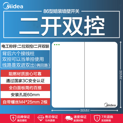 飞雕(FEIDIAO)开关插座86型家用商用 超大面板钢支架格韵系列电源墙壁开关面板 格韵优雅白一位双控开关