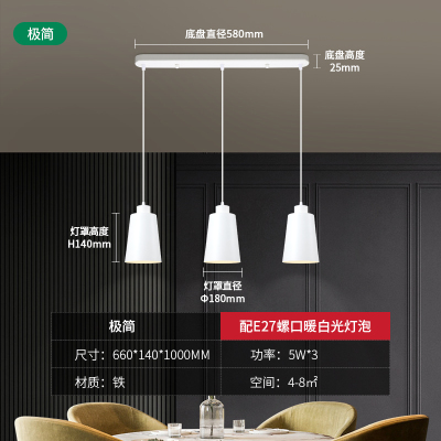 雷士照明三头餐吊灯现代简约创意个性饭厅灯北欧极简风中山灯具