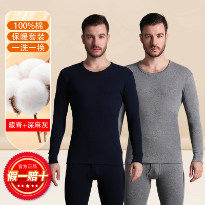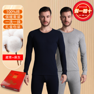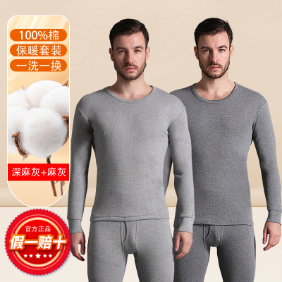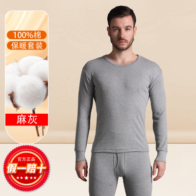 恒源祥纯棉发热衣男款纯棉秋衣卫生裤男士套装全棉毛衫薄款春秋冬