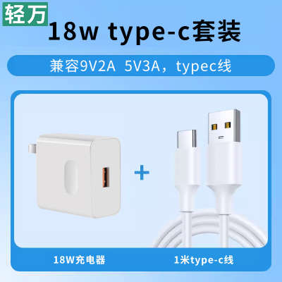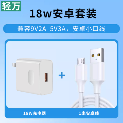 轻万18w充电器超级快充适用华为荣耀小米9v2a充电头usb线充套餐笔记本散热器5v3a充电头