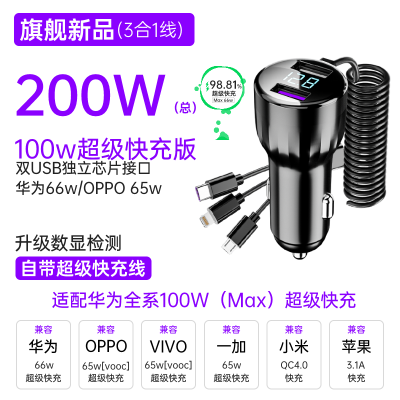 [补贴10%]车载充电器一拖二三超级快充手机米你隐形小点烟器转换插头速汽车