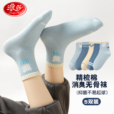 浪莎袜子男纯棉中筒春秋薄款棉袜青少年男袜夏季袜全棉长袜防臭