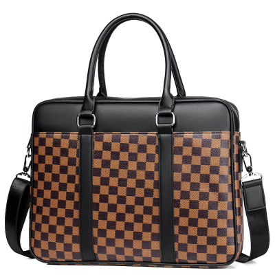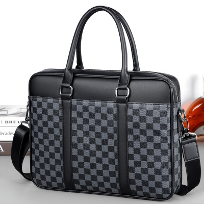 MKJ欧美2023新款时尚男包男士公文包手提包格子商务休闲单肩斜挎包大容量包包