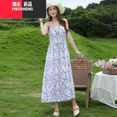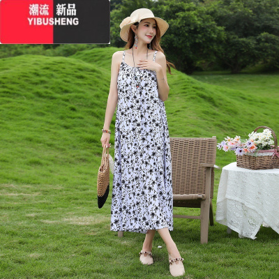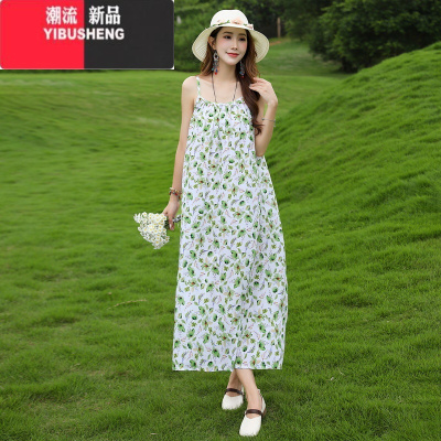 YIBUSHENG碎花棉绸吊带连衣裙女长款2024新款森系高级感看海边度假裙子