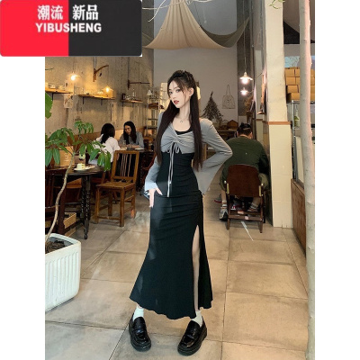 YIBUSHENG宽松大码300斤暗黑系a字裙长款吊带连衣裙女胖mm高个子内搭裙子