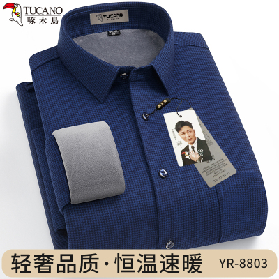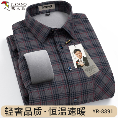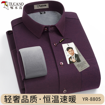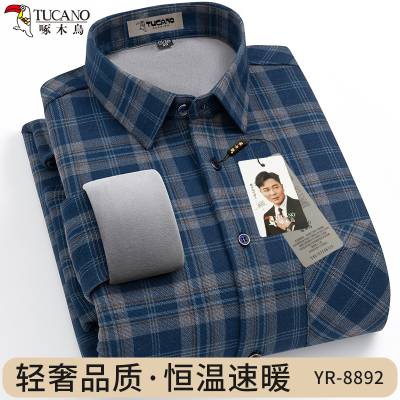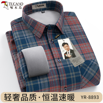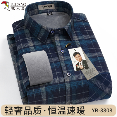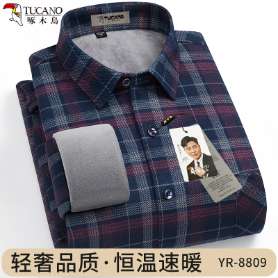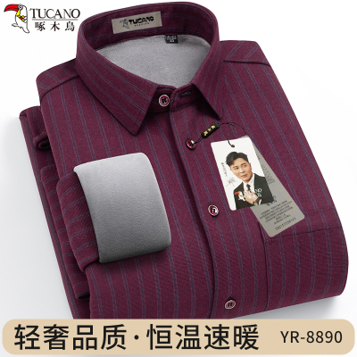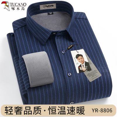 啄木鸟男士羊毛保暖衬衫冬季加绒加厚中老年条纹加大码一体绒衬衣