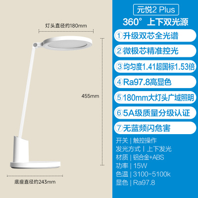 欧普照明OPPLE led台灯圆盘学习书桌卧室床头宿舍节能学生阅读台灯护眼台灯自然光(3300-5000K)5-9W