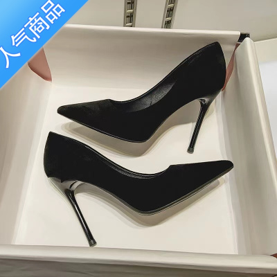 SUNTEK2023新款百搭黑色细跟气质中跟5-7cm舒适尖头学生礼仪单高跟鞋女9