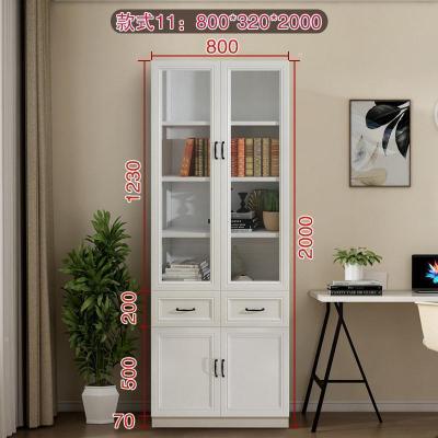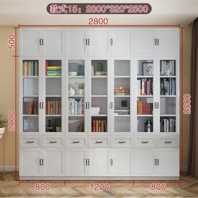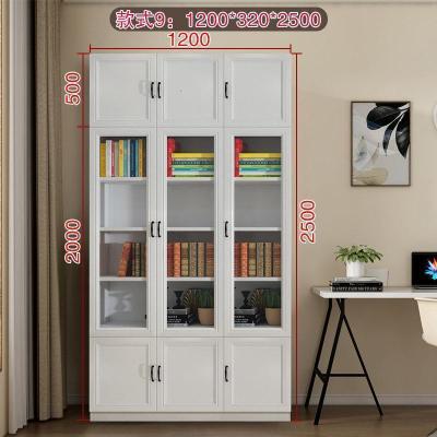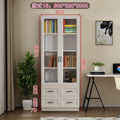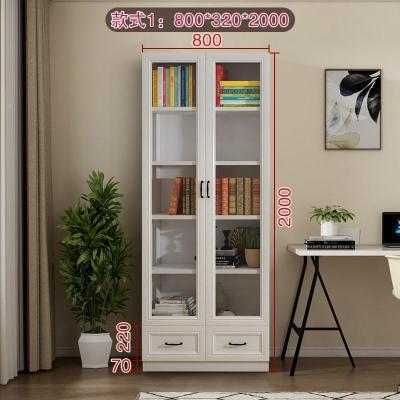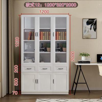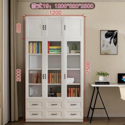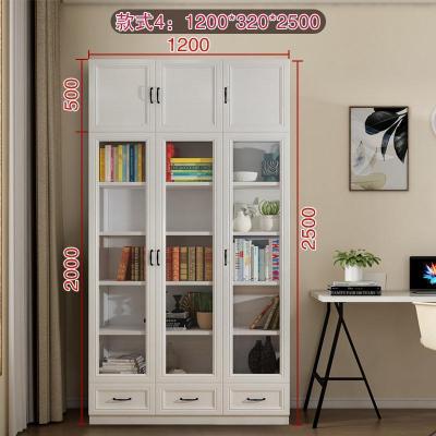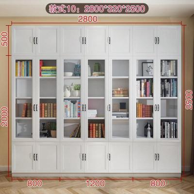森美人简欧现代背景墙大书柜落地带三多功能玻璃书橱F-210