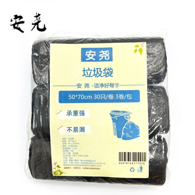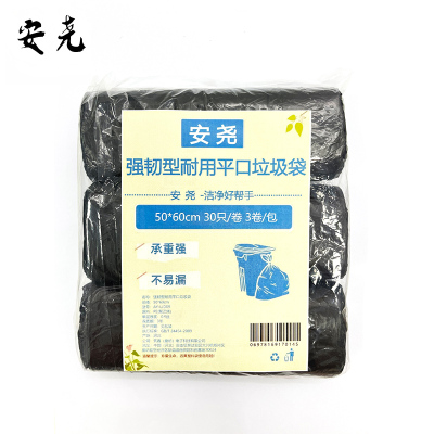 安尧 AY-LJD09 50*60cm 30只/卷 3卷/包 强韧型耐用平口 垃圾袋(计价单位:包)黑色