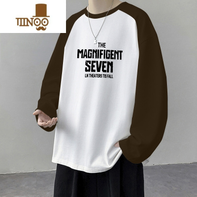 YANXU拼接长袖t恤男款美式复古ins潮牌高街潮流外穿打底衫上衣