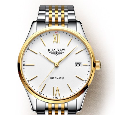 卡梭(KASSAW)手表男超薄自动机械表男商务休闲皮带正品日历男表防水腕表K864G