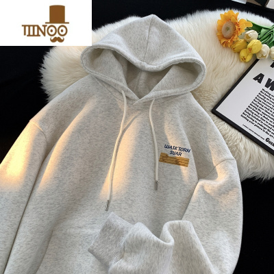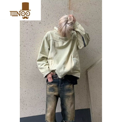 YANXU美式高街复古水洗做旧黄泥拉链牛仔连帽外套男女潮牌宽松套头卫衣