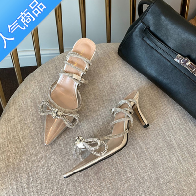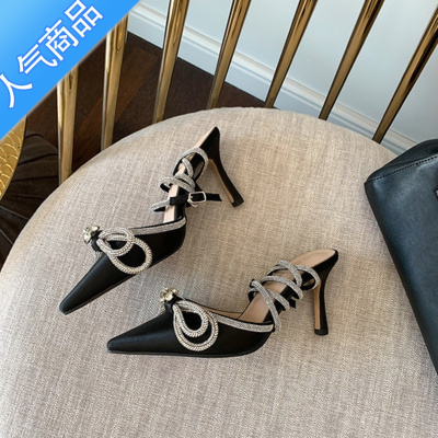 SUNTEK巨美自留!超A版~网红水钻蝴蝶结细跟包头凉鞋ins名媛尖头高跟鞋