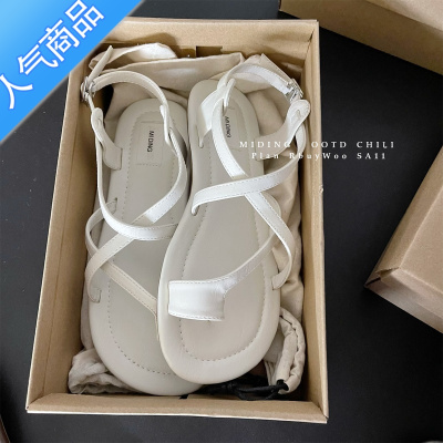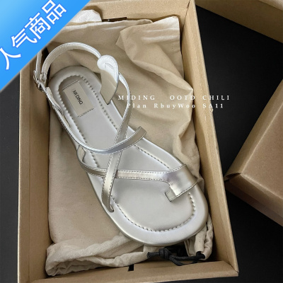 SUNTEKMDN米町 巨软巨好看~超软底银色夹趾凉鞋简约交叉细带平底女鞋