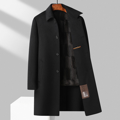 可脱卸金貂绒内胆双面呢羊毛大衣秋冬男士长款双面呢大衣男装外套