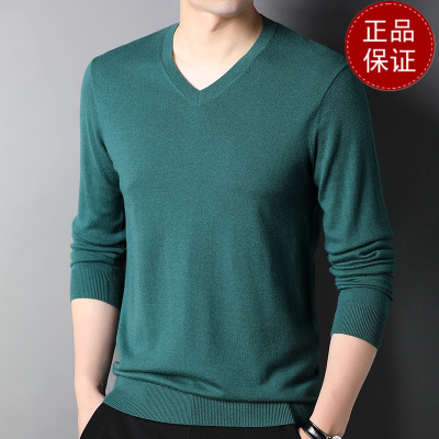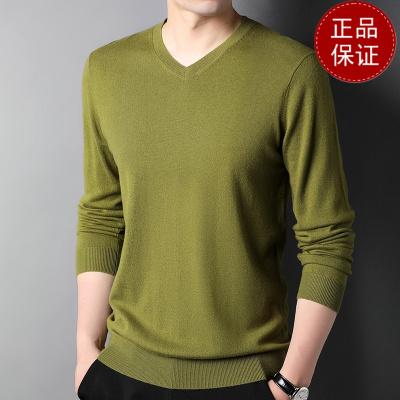 免费退换 专柜正品山羊绒衫男鸡心领套头长袖T恤针织打底衫男士V领毛衣山羊绒不褪色保暖舒适全羊毛新品特价大牌同款