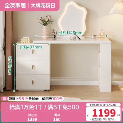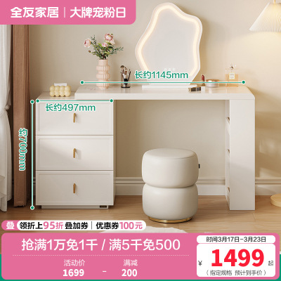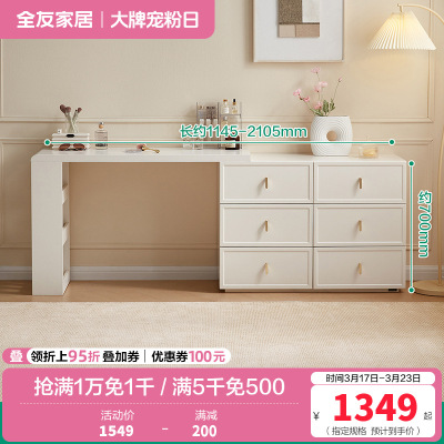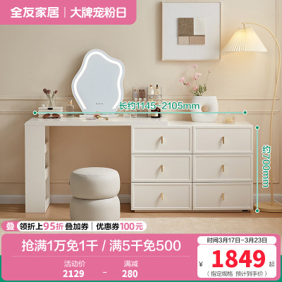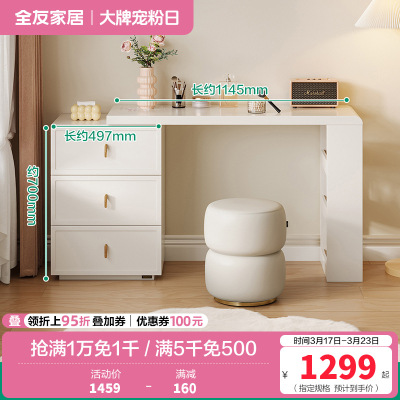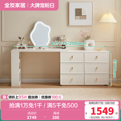全友家居梳妆台斗柜一体可伸缩转角电脑桌书桌床尾收纳储物柜子