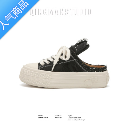 SUNTEKmiu家同款饼干小白鞋女2023春季新款休闲厚底帆布鞋运动增高板鞋
