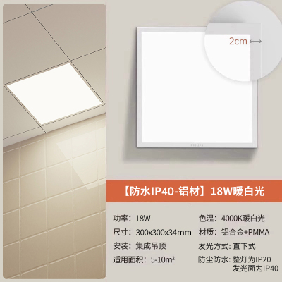 [飞利浦1140] 嵌入式厨房卫生间厨卫吸顶灯面板灯平板灯格栅灯具