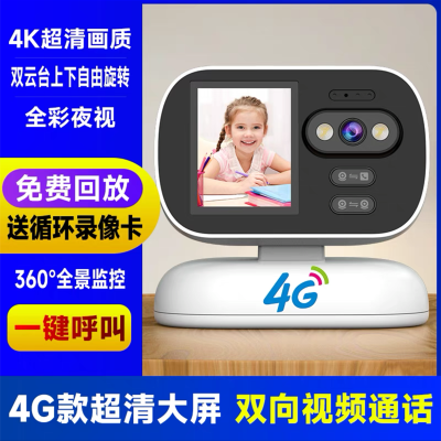 送监控卡 4G流量卡双镜头监控摄像头家用远程手机360度全景全彩夜视5MP高清无线网络室内智能摄像机 4G+断电续航版