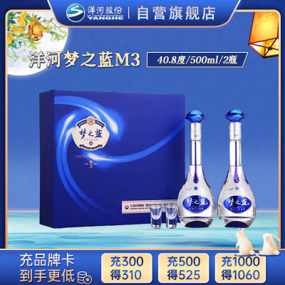 洋河(YangHe)蓝色经典 梦之蓝M3 40.8度 500ml*2瓶 礼盒装 浓香型白酒 口感绵柔 新老包装随机发货