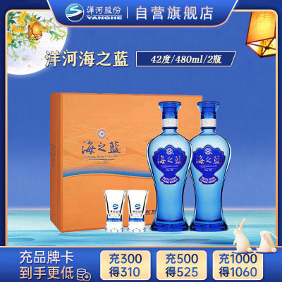 洋河 蓝色经典 海之蓝 42度 480ml*2瓶 礼盒装 浓香型白酒