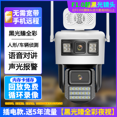 送7天循环监控录像卡 4G流量卡升级三镜头旋转360度全景无死角摄像影头无线家用手机远程室外高清双画面监控器 4G版