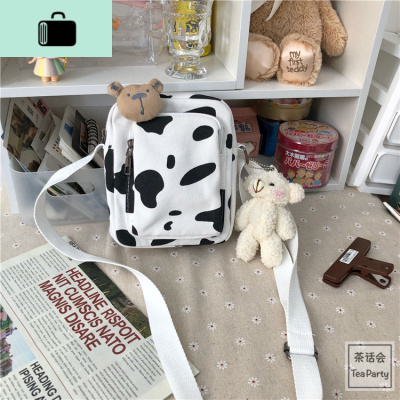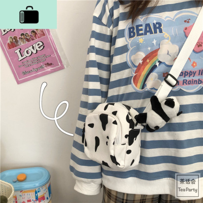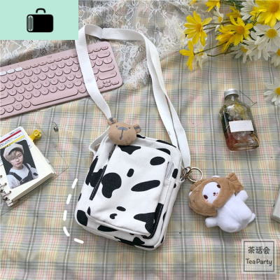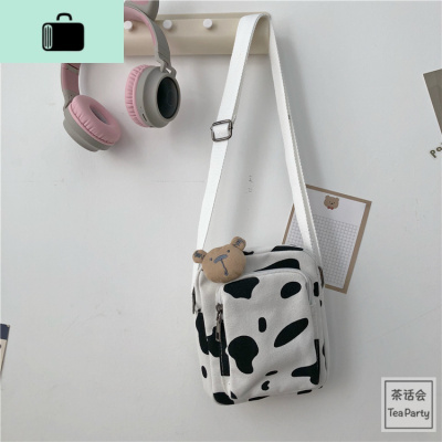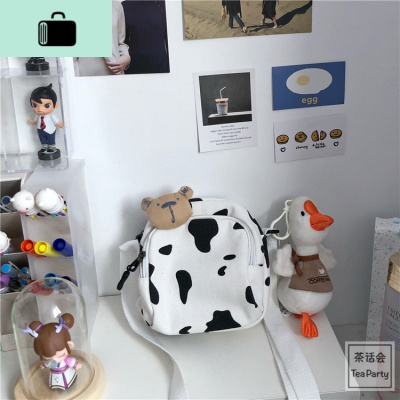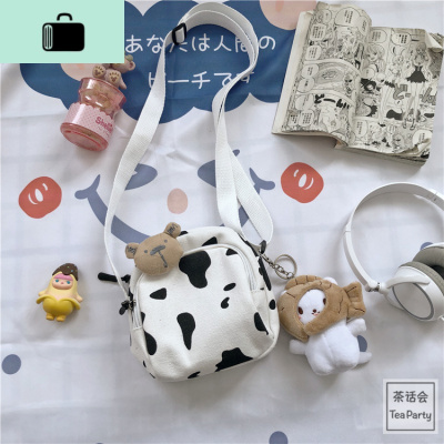 茶话会韩国INS奶牛学生帆布包小包日系原宿古着感软妹少女斜挎包NEW LAKE