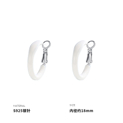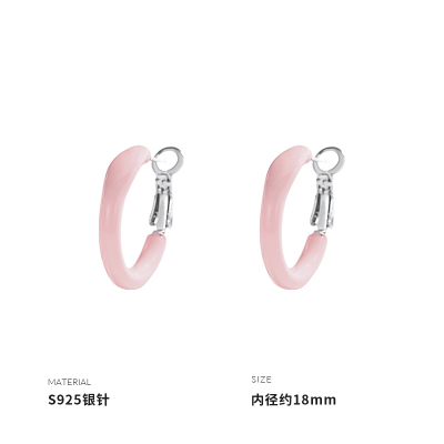 925纯银马卡龙色银针耳圈女耳环耳饰韩国网红气质个性时尚送女朋友老婆情人节七夕生日礼物