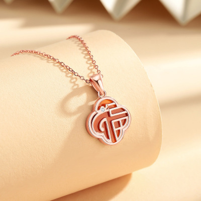 925纯银龙年本命年红玛瑙项链女款和田玉吊坠锁骨链轻奢小众颈链送女朋友老婆情人节七夕生日礼物