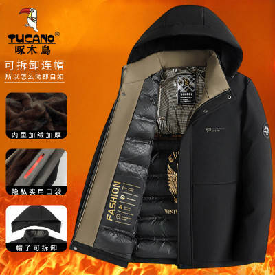 啄木鸟加绒加厚男士棉衣冬季新款商务休闲保暖棉服爸爸冬装外套