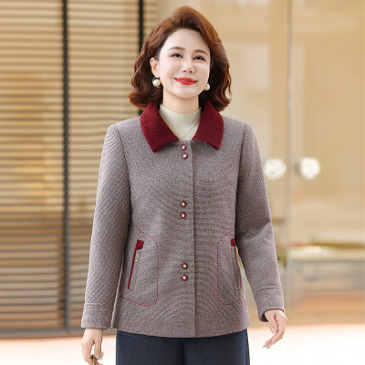 新款女装中老年洋气妈妈外套秋冬新款上衣50岁短款翻领中年装女款