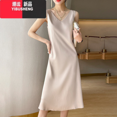 YIBUSHENG中长款打底裙背心纯色欧美黑辣妹收腰a字大裙摆吊带长裙连衣裙