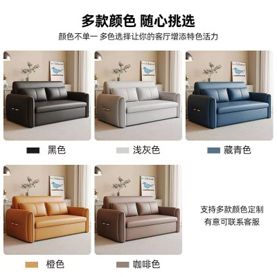 景山百岁 智能电动沙发床两用折叠防猫爪布真皮多功能卧室小户型双人伸缩床 橙色 0.7米+乳胶+USB+手机支架+储物