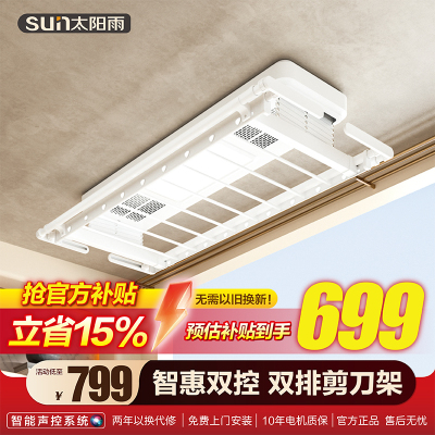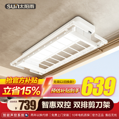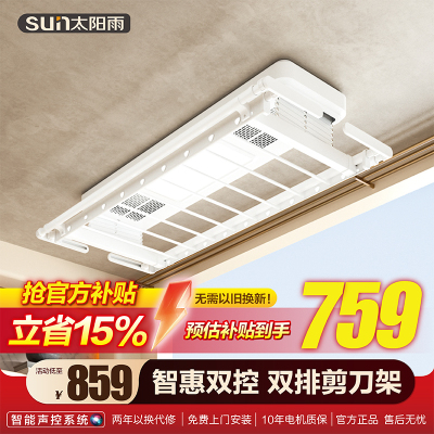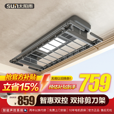 太阳雨 电动晾衣架超薄米家控制T猫精灵智能升降晾衣架阳台晒衣杆自动烘干消毒晾衣杆 灰色-语音+遥控【LED照明·双层剪刀架】 送货上门-免费安装