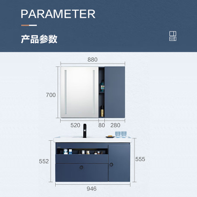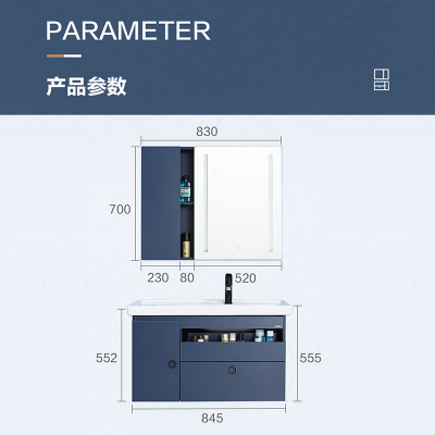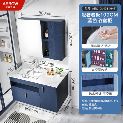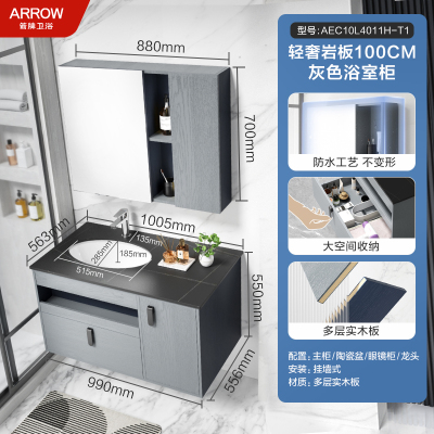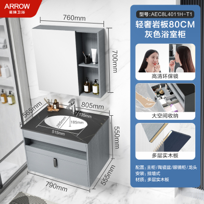 箭牌(ARROW)卫浴家具浴室柜组合套装悬挂式简约收纳智能镜柜卫生间洗脸陶瓷一体盆