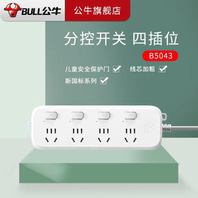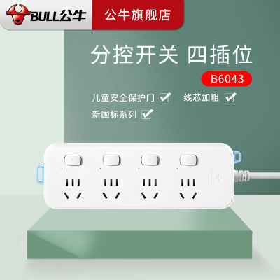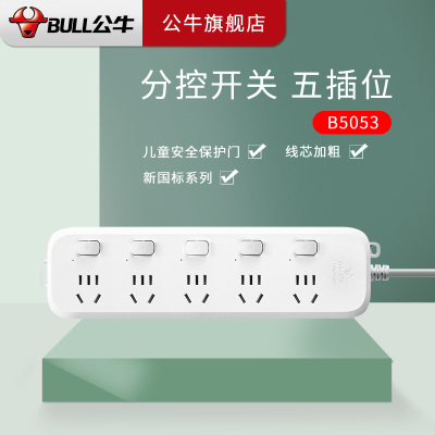 公牛(BULL)新国标B5/B6系列带儿童保护电源插座排插正品插线板多功能通用智能插板带线拖接线板家用插排