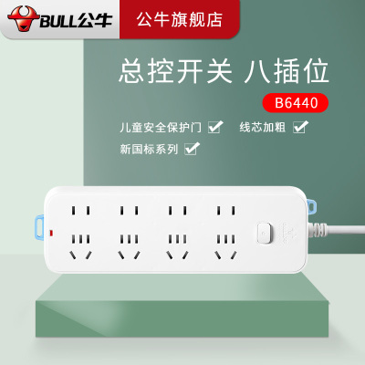 公牛(BULL)插座 GN-B6440新国标 带儿童保护门电源插座/接线板/拖线板/插线板 8插位 全长3米 B6440-3米