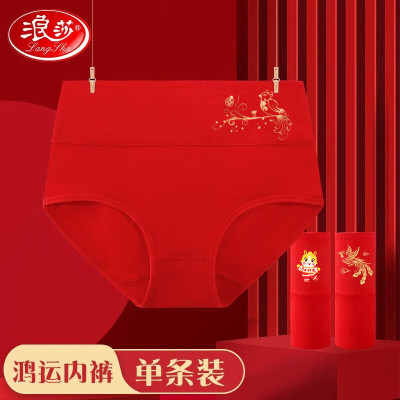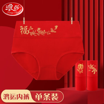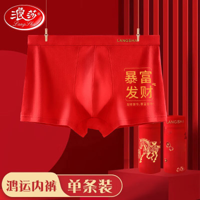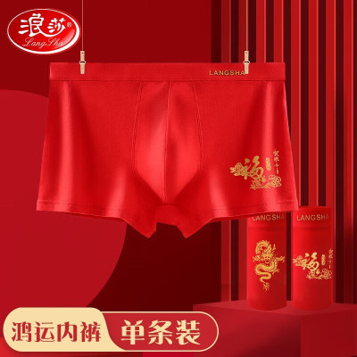 浪莎(LangSha)本命年内裤男士大红色平角裤龙年情侣棉质结婚喜庆女士鸿运礼物单条