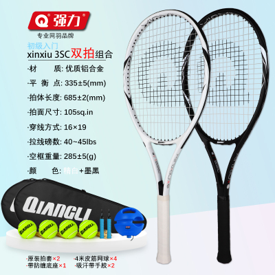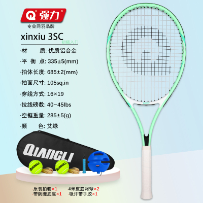 强力(QIANGLI)网球拍初学单人打回弹有绳网球训练套装入门优质铝合金网球拍