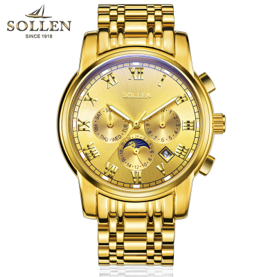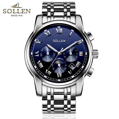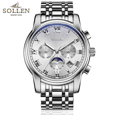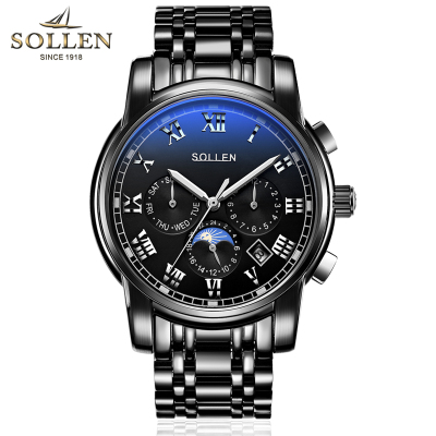 梭伦(SOLLEN)手表男自动机械表钢带镂空时尚休闲商务复古腕表夜光防水正装男表SL-801