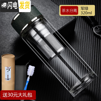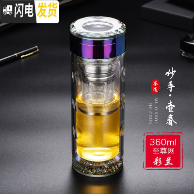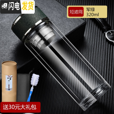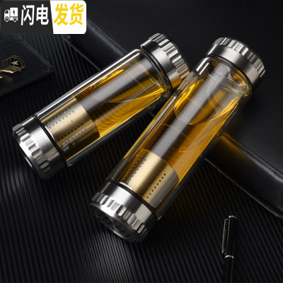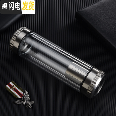 三维工匠双层玻璃杯过滤泡茶杯男耐热加厚水杯个性商务水晶杯子