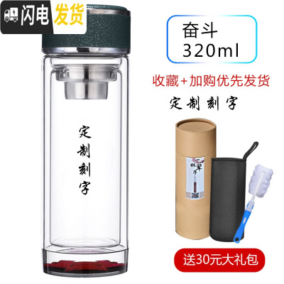 三维工匠双层玻璃杯大肚子便携车载商务泡茶杯子口杯水杯茶杯 V17