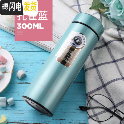 三维工匠玻璃内胆保温杯男女士大容量不锈钢便携杯子商务办公茶杯定制刻字 深邃蓝