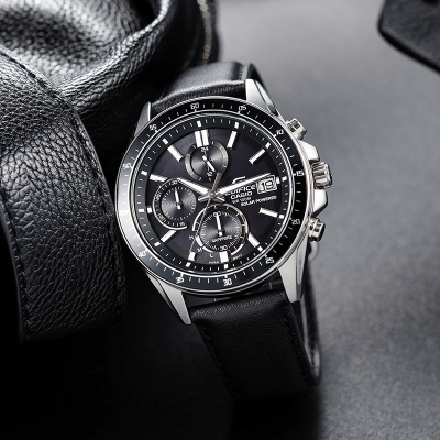 卡西欧旗舰店手表男正品Edifice限量商务休闲黑暗之心蓝宝石镜面皮/钢带日韩石英表 男 男士表EFS-S510